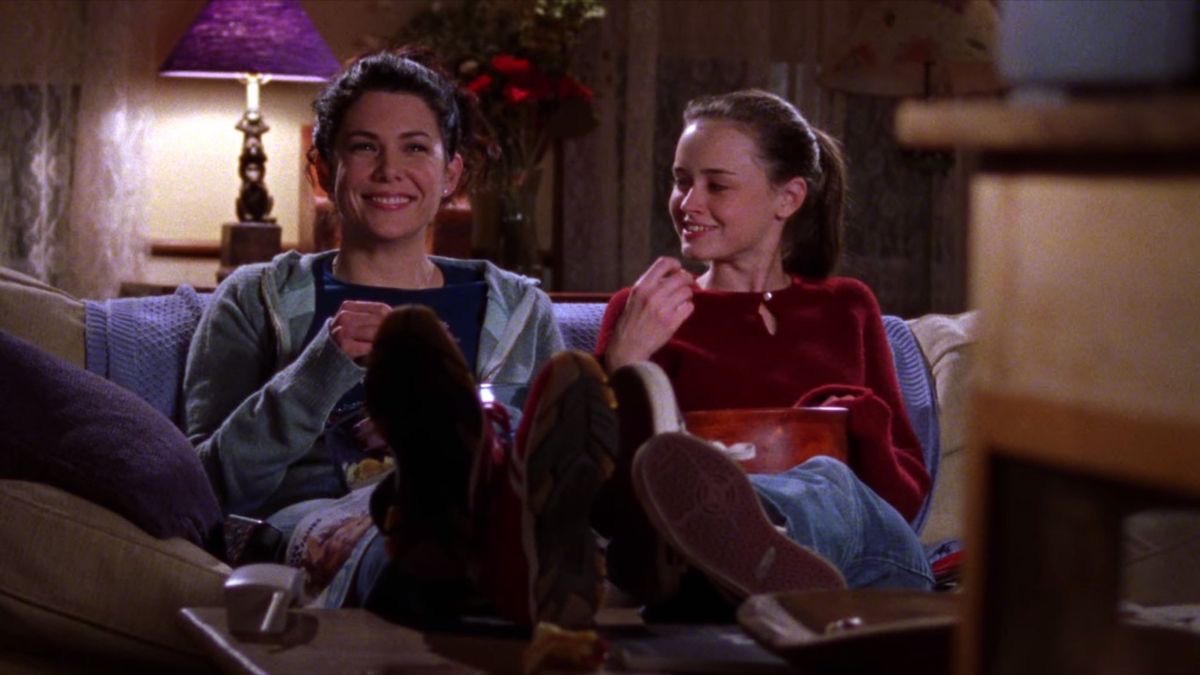 С первого эпизода Эми Шерман-Палладино фиксирует родственную теплоту и подчеркивает контраст между мамой и дочерью. Все в округе знают Гилмор, героини много времени проводят вместе и порой ведут себя как сестры или подруги. Крепкая связь закономерно может вызвать зависть: Лорелай — та самая классная мама, которая будет обсуждать с дочерью мальчиков и подталкивать ходить на вечеринки, а Рори — безупречная дочь, лишенная капризов и потребности нарушать правила. Совместные сцены героинь действительно полны нежности и любви: девочки Гилмор засиживаются допоздна у телевизора, секретничают в ночи, поддерживают друг друга, несмотря ни на что.