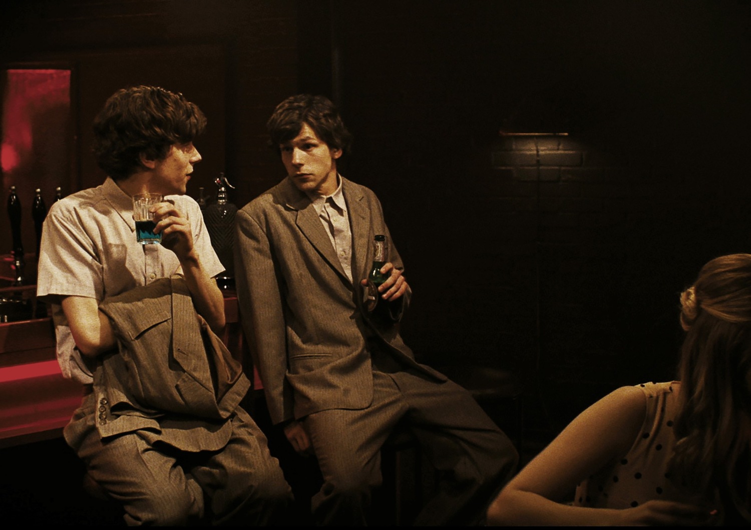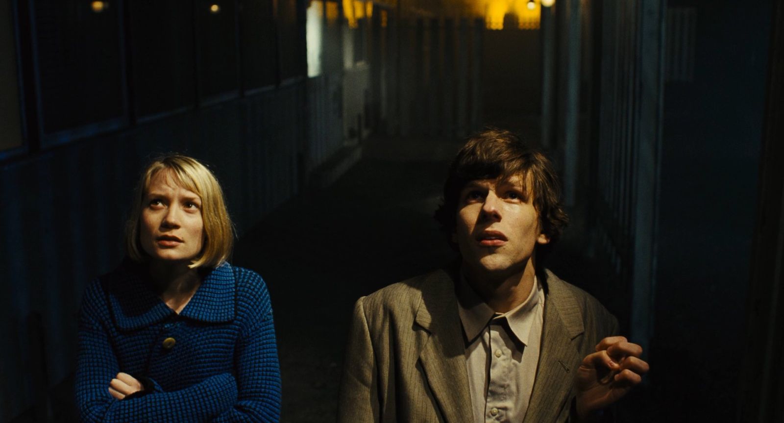 Вероятно, именно роль в «Двойнике» можно назвать для Джесси Айзенберга одной из самых примечательных в карьере. Актер сыграл сразу двух персонажей: неловкого Саймона и его двойника, самоуверенного Джеймса. Айзенберг создает двух автономных героев с различными характерами — и каждый живет своей жизнью. Мы привыкли видеть актера Айзенберга бунтарем в «Социальной сети» и ловким фокусником в «Иллюзиях обмана», стеснительным выжившим в «Зомбиленде» и депрессивным мечтателем в «Парках культуры и отдыха», но внезапно два этих амплуа — застенчивый и харизматичный — сталкиваются в «Двойнике». Сам Айзенберг однажды даже записал инструкцию, как справляться с тревогой и использовать ее в свою пользу, и, глядя на Саймона, можно понять, как эти личные наблюдения оживают на экране.