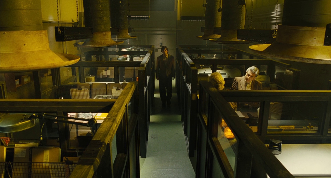 Мир «Двойника» кажется одновременно реальным и искусственно сконструированным: каждый элемент — от света до декораций — является деталью гнетущей и контролирующей системы. Неслучайна и цветовая палитра, выбранная Айоади: желтые и синие вспышки цвета акцентируют внутренние переживания героев, а еще отсылают к символике Достоевского. За героями исподтишка наблюдает вуайеристская камера Эрика Уилсона, словно в каждом офисном коридоре установлено наблюдение.