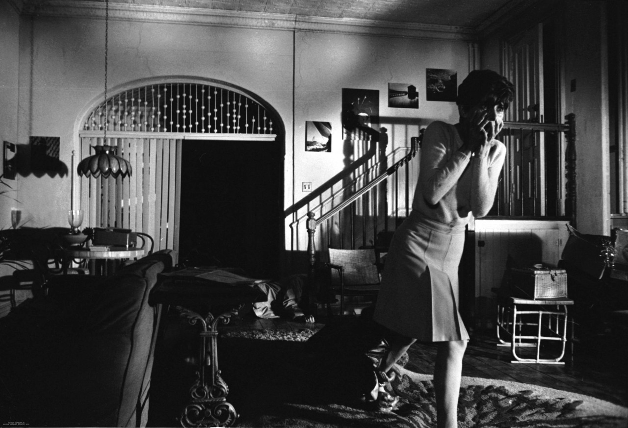 С каждой минутой, проведенной внутри здания, дом начинает казаться все более мистически оторванным от реальности. Многоквартирное сооружение, в котором должны обитать десятки жителей, большую часть времени пустует. Единственная соседка Сьюзи — маленькая Глория (Джули Эрро), помогающая главной героине по хозяйству (она бегает в ближайший супермаркет за продуктами и в целом с радостью выполняет любые поручения). Одинокие героини по разным причинам чувствуют себя отрезанными от общества и находят друг в друге компаньонок, поэтому именно Глория будет оказывать помощь Сьюзи, а не, например, вечно отсутствующий муж Сэм (Ефрем Цимбалист-мл.), который по непонятным причинам постоянно проверяет супругу на прочность, предлагая ей разбираться со сложностями, связанными со ограничением зрения, самостоятельно. Ощущение изоляции героинь подчеркивается местом действия, выбранным в качестве основного, — подвальной квартирой с низкими потолками.