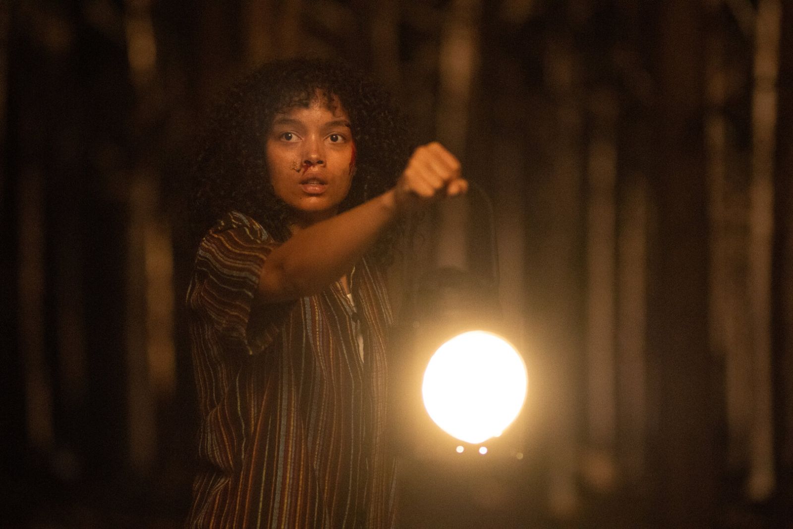 Аутентичность «Песочного человека» (в оригинале Eye for an Eye, то есть просто «Око за око») в южной готике: ландшафтах Флориды, полной болотистых мест, качающихся деревьях-гигантах и миксе из африканского и карибского наследия. Локации вокруг подошли бы для нового дела Раста Коула из «Настоящего детектива», но у авторов замах куда менее амбициозный: зловещие тайны семьи, повторение поколенческих ошибок и тиражирование унылых городских легенд. Хоррор ли это? Скорее примитивная страшилка. Состоит она из посредственного грима, скримеров с подростками, у которых вместо глаз кровавые подтеки, а ещё нелепой связки сцен, не позволяющей иногда понять, что к чему. Все это, кажется, лишь полбеды – после легкого введения фильм выкатит пудовый набор жанровых клише, где будет чеховское ружье в виде странной слепой бабушки (С. Ипейта Меркерсон, знакомая по «Радио» и небольшой роли во втором «Терминаторе»), возмездие беспечным и гадким подросткам (до невозможности стереотипный Финн Беннетт в роли уличного хулигана), а также сумбурная поножовщина, снятая с дешевизной и налетом жанрового сюрреализма.