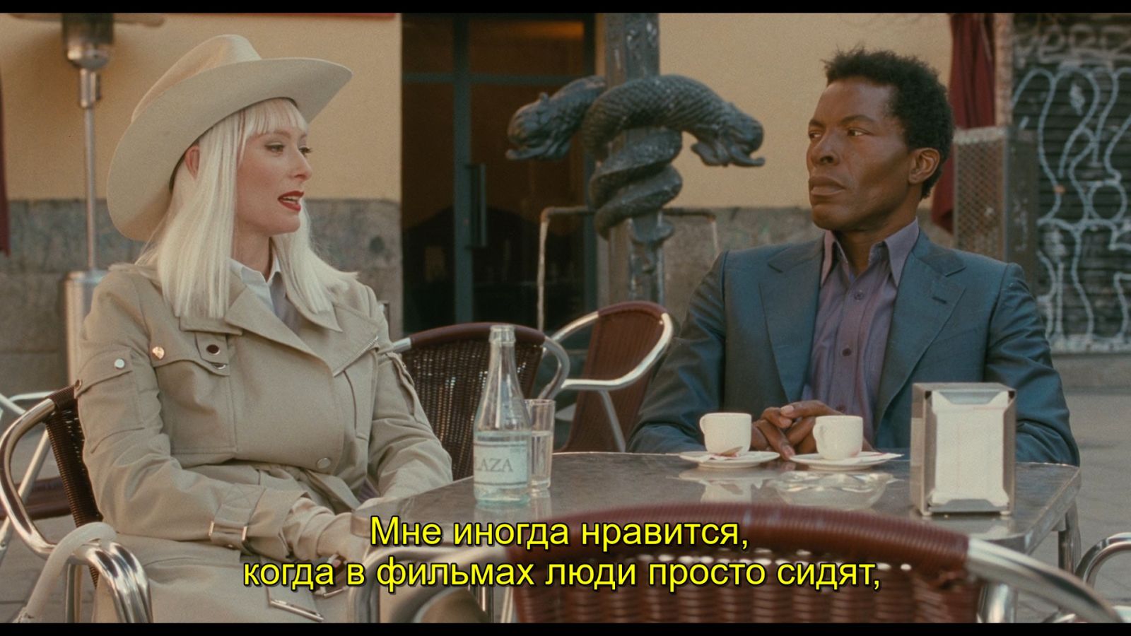 В-третьих, длина кадра позволяет разглядеть и расслышать культурные рифмы и заимствования, на которых построены фильмы Джармуша, и проникнуться ими. Самое время упомянуть, что режиссер всерьез занимался литературой, играл в рок-группе и даже сочиняет стихи.