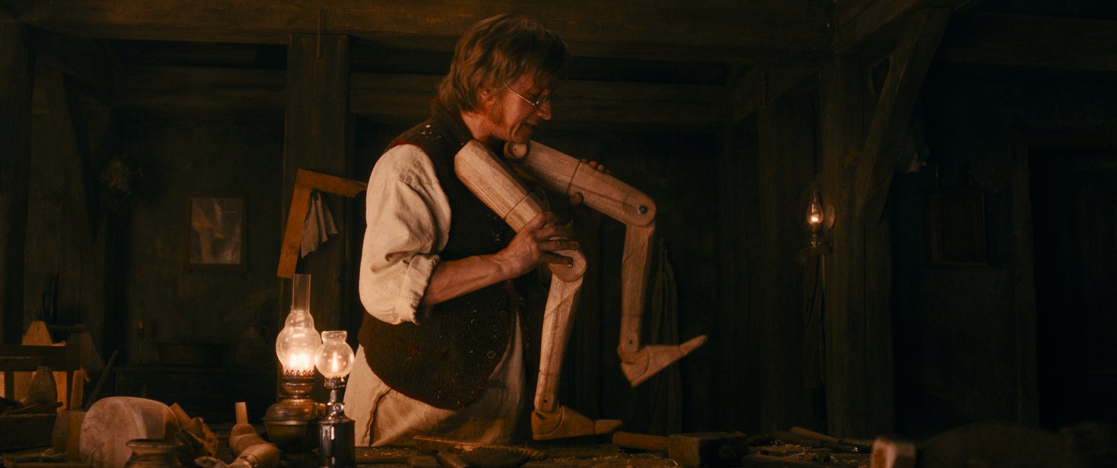 Над сценарием «Буратино» работали завсегдатаи студии Art Pictures — Андрей Золотарев в соавторстве с Аксиньей Борисовой и Алиной Тяжловой, однако именно драматургия становится главным разочарованием картины. В классической истории золотой ключик был финальным чудом и смысловым центром повествования, тогда как в новом прочтении главный атрибут появляется в первые пять минут. История развивается без четкого направления, а конфликты остаются поверхностными: внутренние переживания Буратино связаны с ощущением, что Карло его разлюбил, они возникают и исчезают слишком легко, чтобы стать по-настоящему значимым препятствием, а противостояние с Карабасом чисто формальное — его пафосные речи о театре скорее вызывают смех, чем страх. В результате фильм наполняется чередой случайных встреч и эпизодов, не складывающихся в цельное высказывание. Особенно досадно, что сценарий лишь намеками касается темы инаковости — Буратино несколько раз связывает свои беды с деревянным происхождением, — но чужеродность героя так и не становится смысловым ядром истории. А ведь детям, которые часто ощущают себя не такими, как все, так важно было бы увидеть на экране принятие Буратино обществом.