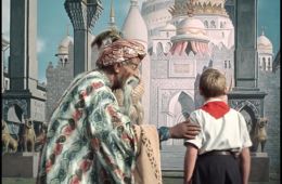 12-летний московский школьник Волька Костыльков, купаясь в Москве-реке, находит какой-то древний запечатанный сосуд. Мальчишеское любопытство настолько сильно, что при первом же удобном случае Волька вскрывает его, и из сосуда появляется сказочный джинн - Гассан Абдурахман ибн Хоттаб. За то, что Волька спас его от тысячелетнего заточения, джинн, прозванный мальчиком Хоттабычем, становится его верным слугой. Он пытается задарить мальчика, пригнав к его дому целый караван верблюдов с несметными сокровищами. Вместе они совершат увлекательный полёт в Индию на волшебном ковре-самолёте.