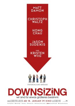 Муж и жена (Мэтт Дэймон и Кристен Уиг), уставшие от повседневной жизни и частых ссор, решаются кардинально изменить свою жизнь. Крайне кардинально. И выбрали они для этого уменьшение. В прямом смысле этого слова. Став волонтерами новой технологии, они согласились на уменьшение самих себя с помощью специального устройства, но, к удивлению мужа, в самый последний момент жена отказывается, и он уменьшается один. После манипуляций с размерами и по прошествии некоторого времени герой выясняет, что, будучи маленьким, жить действительно замечательно.